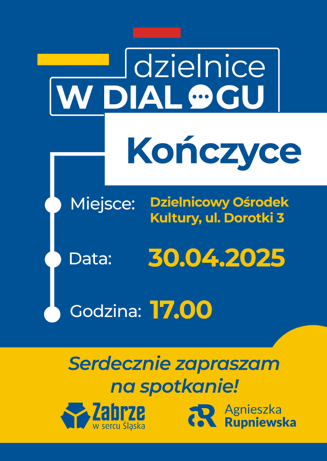 Serdecznie zapraszamy mieszkańców Zabrza na kolejną odsłonę cyklu spotkań „Dzielnice w Dialogu”. Najbliższe wydarzenie odbędzie się w środę, 30 kwietnia o godz. 17:00 w Dzielnicowym Ośrodku Kultury przy ul. Dorotki 3.