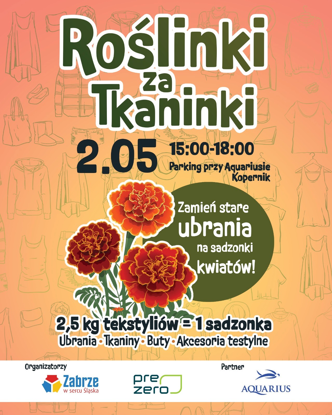 Akcja „Roślinki za Tkaninki” została zorganizowana przez Miasto Zabrze oraz firmę PreZero, która od lat działa na rzecz zrównoważonego gospodarowania odpadami. Partnerem wydarzenia jest również basen Aquarius Kopernik, który udostępnił przestrzeń parkingową na potrzeby akcji.
