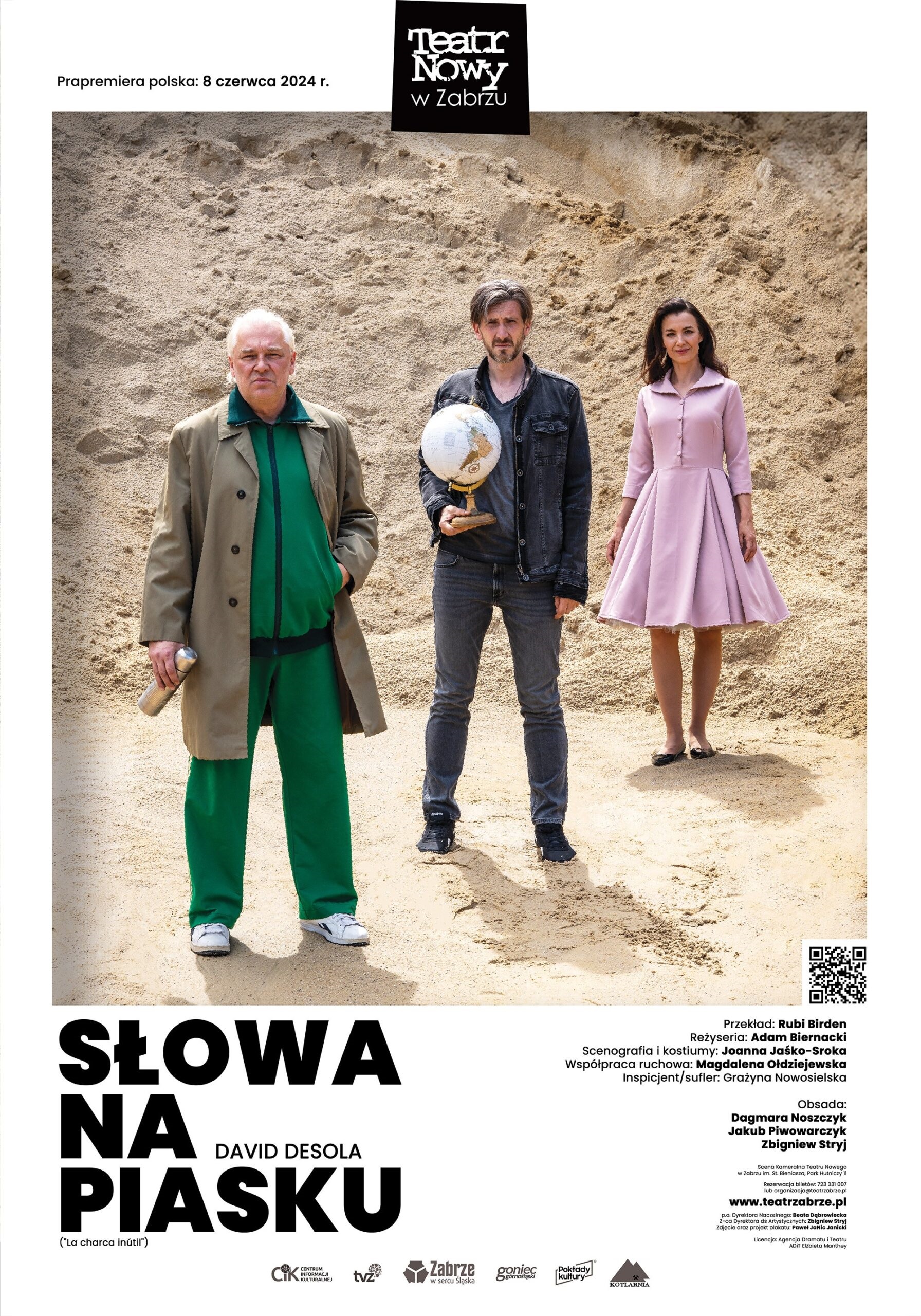 W tegorocznej edycji programu „Teatr Polska” spośród 233 zgłoszonych spektakli wybrano jedynie 15 tytułów, które wyruszą w trasę po Polsce. Wśród nich znalazła się najnowsza produkcja Teatru Nowego w Zabrzu – dramat „Słowa na piasku”, w reżyserii Adama Biernackiego.